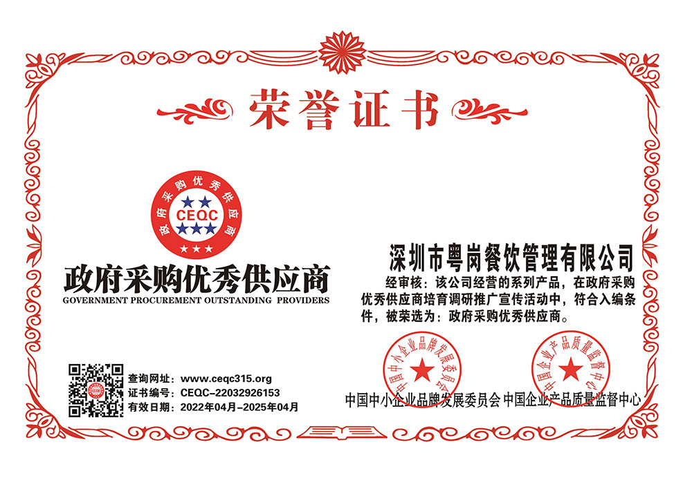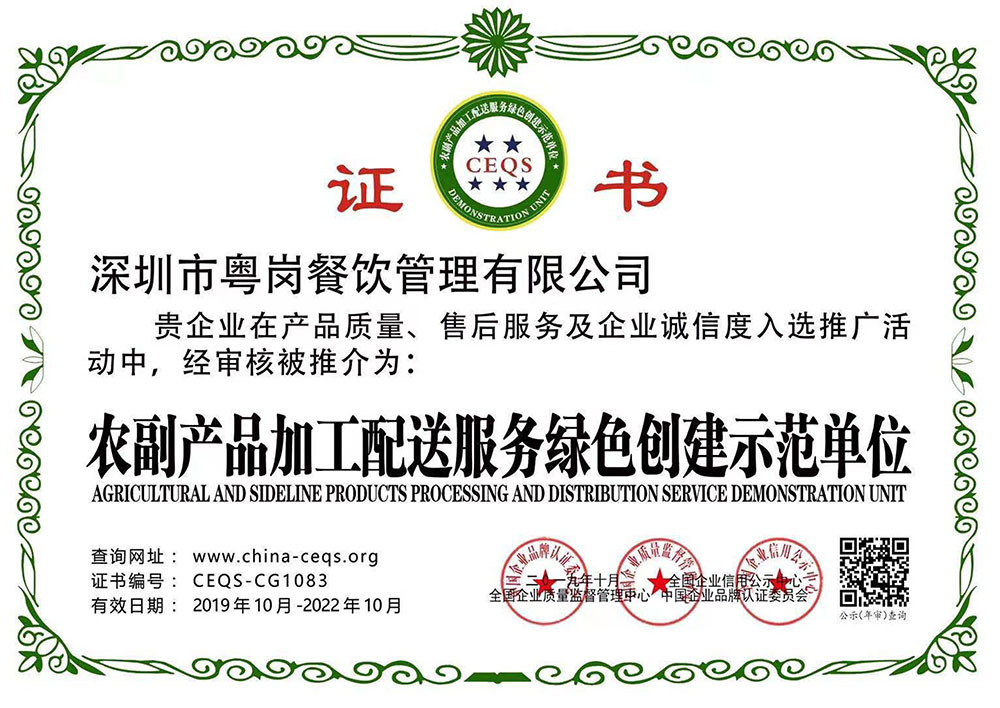 深圳市粵崗餐飲管理有限公司,是一家集蔬菜種植和農(nóng)副產(chǎn)品配送為一體的專業(yè)型餐飲公司,主要為學(xué)校、工廠企事業(yè)機(jī)關(guān)單位提供蔬菜和農(nóng)副產(chǎn)品配送服務(wù)。公司自成立以來(lái)始終以質(zhì)優(yōu)價(jià)廉、服務(wù)至上為原則,嚴(yán)格按照ISO:9001國(guó)際標(biāo)準(zhǔn)體系進(jìn)行管理。同時(shí)建立了行業(yè)領(lǐng)先的配送中心、大型冷庫(kù)和保鮮庫(kù)、檢測(cè)中心以及專業(yè)化的配送團(tuán)隊(duì),能長(zhǎng)期安全、穩(wěn)定、準(zhǔn)時(shí)的配送貨物。我們所有蔬菜均經(jīng)過(guò)初步加工、無(wú)黃葉,無(wú)泥沙等雜質(zhì),利用率達(dá)97%以上...保障向用戶提供的各類食材的衛(wèi)生和質(zhì)量。公司為了適應(yīng)不同客戶的需求,配有專業(yè)人員和配送車輛,實(shí)行“一對(duì)一”的服務(wù)體制,一心一意的為客戶服務(wù),秉承粵崗誠(chéng)實(shí)守信、服務(wù)第一、客戶至上的服務(wù)標(biāo)準(zhǔn),真正讓客戶花最少的錢吃最好的菜。粵崗多年來(lái)何以欣欣向榮,因?yàn)槲覀冎乐挥杏掠趽?dān)當(dāng)責(zé)任,才能承擔(dān)更大的責(zé)任,就是因?yàn)?粵崗員工貫徹公司態(tài)度決定一切、細(xì)節(jié)決定成敗的真理,從質(zhì)量抓起,從服務(wù)做起,才創(chuàng)造了如今的規(guī)?;?yīng)、統(tǒng)一性配送、專業(yè)化服務(wù)的粵崗。